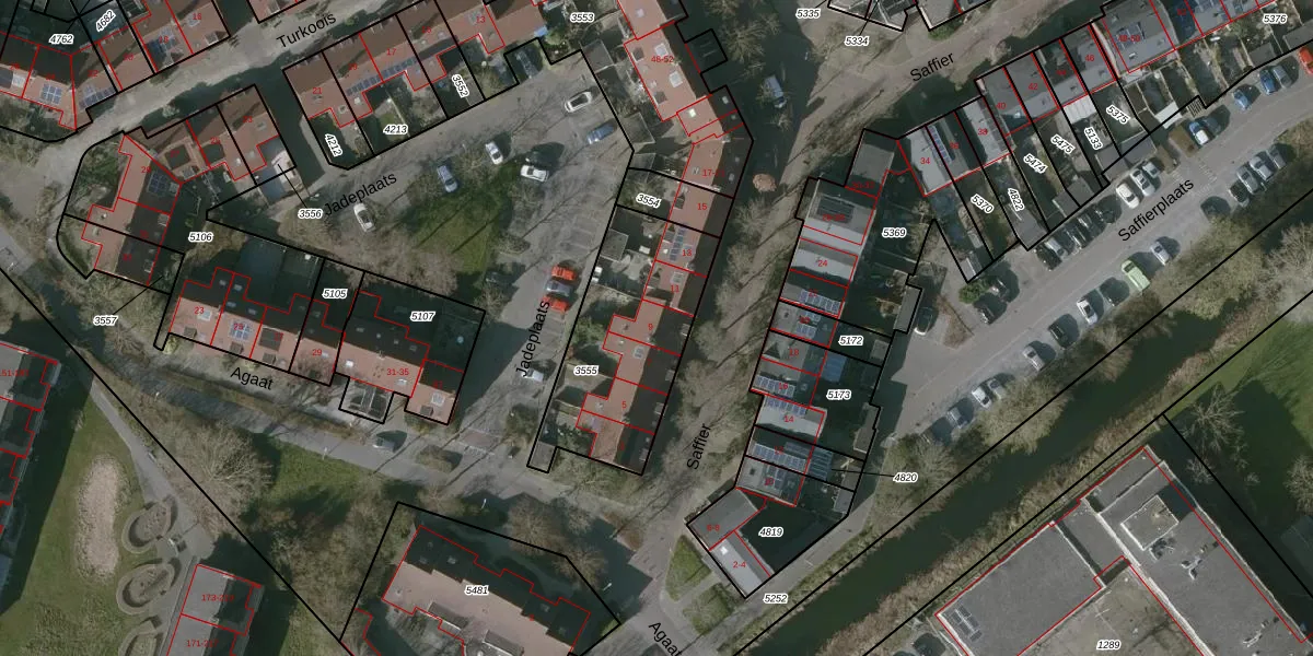Het perceel waarop Saffier 9 staat heeft een oppervlakte van 656 m². Dit is een groot perceel. De perceeloppervlakte wordt geregistreerd door het Kadaster. Gedetailleerde informatie over de maten van dit perceel kunt u vinden in het rapport Kadastrale kaart met maatvoering van Saffier 9.