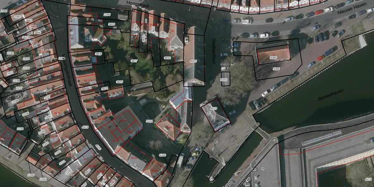 Het perceel waarop Stadsschuur 4 staat heeft een oppervlakte van 2159 m². Dit is een zeer groot perceel. De perceeloppervlakte wordt geregistreerd door het Kadaster. Gedetailleerde informatie over de maten van dit perceel kunt u vinden in het rapport Kadastrale kaart met maatvoering van Stadsschuur 4.