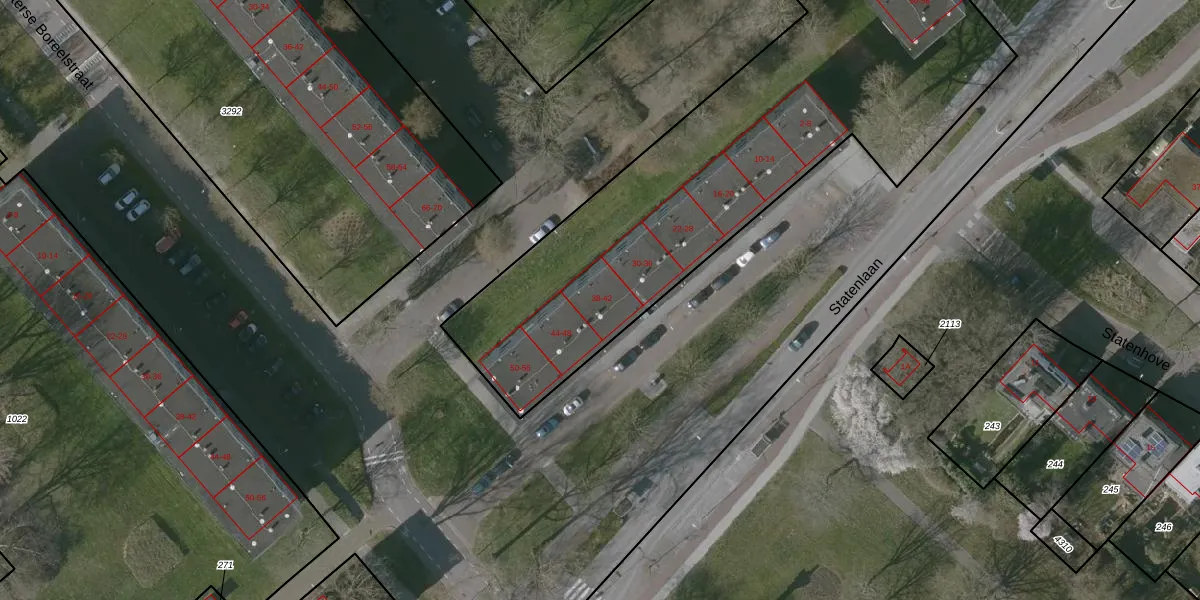 Statenlaan 40 is gelegen op kadastraal perceel MDB01O1730. Deze kadastrale aanduiding is uniek en wordt gebruikt door het Kadaster om eigendomsrechten en andere zakelijke rechten vast te leggen. Het perceel maakt onderdeel uit van de kadastrale gemeente Middelburg.