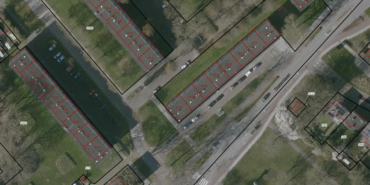 Het perceel waarop Statenlaan 48 staat heeft een oppervlakte van 5589 m². Dit is een zeer groot perceel. De perceeloppervlakte wordt geregistreerd door het Kadaster. Gedetailleerde informatie over de maten van dit perceel kunt u vinden in het rapport Kadastrale kaart met maatvoering van Statenlaan 48.