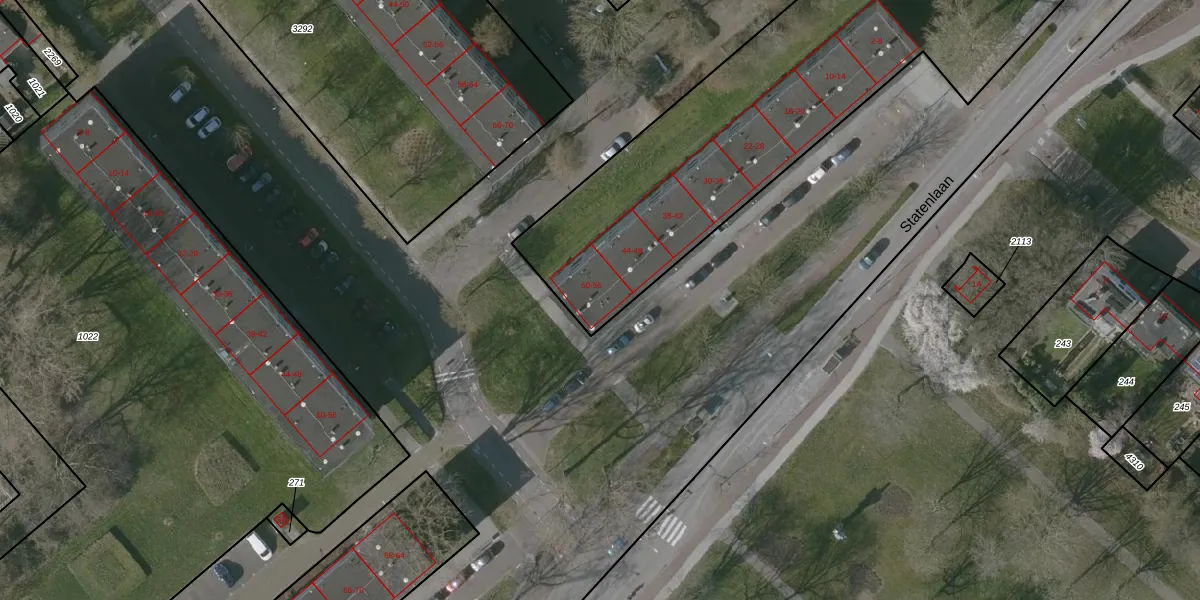 Statenlaan 50 is gelegen op kadastraal perceel MDB01O1730. Deze kadastrale aanduiding is uniek en wordt gebruikt door het Kadaster om eigendomsrechten en andere zakelijke rechten vast te leggen. Het perceel maakt onderdeel uit van de kadastrale gemeente Middelburg.