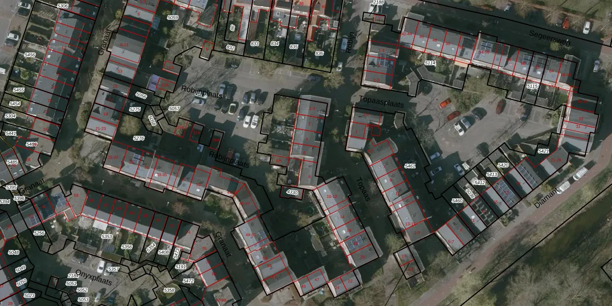Topaas 6 is gelegen op kadastraal perceel MDB01O5276. Deze kadastrale aanduiding is uniek en wordt gebruikt door het Kadaster om eigendomsrechten en andere zakelijke rechten vast te leggen. Het perceel maakt onderdeel uit van de kadastrale gemeente Middelburg.