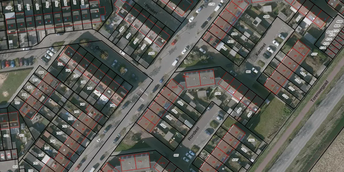 Het perceel waarop Torentrans 65 staat heeft een oppervlakte van 836 m². Dit is een groot perceel. De perceeloppervlakte wordt geregistreerd door het Kadaster. Gedetailleerde informatie over de maten van dit perceel kunt u vinden in het rapport Kadastrale kaart met maatvoering van Torentrans 65.