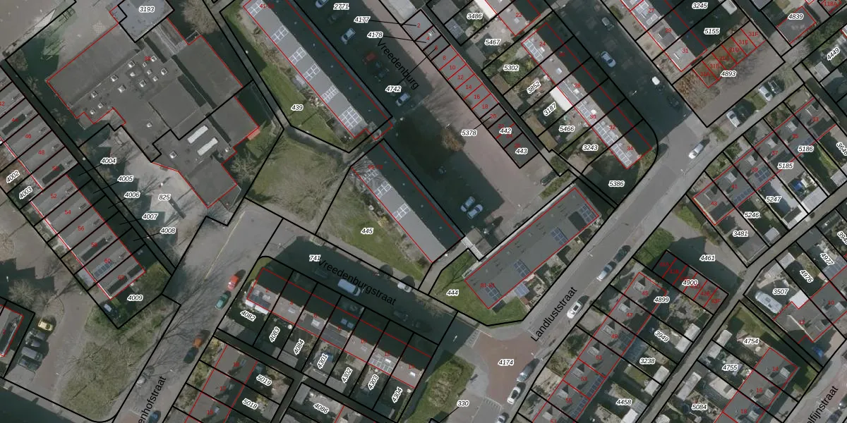 Het perceel waarop Vreedenburg 69 staat heeft een oppervlakte van 655 m². Dit is een groot perceel. De perceeloppervlakte wordt geregistreerd door het Kadaster. Gedetailleerde informatie over de maten van dit perceel kunt u vinden in het rapport Kadastrale kaart met maatvoering van Vreedenburg 69.