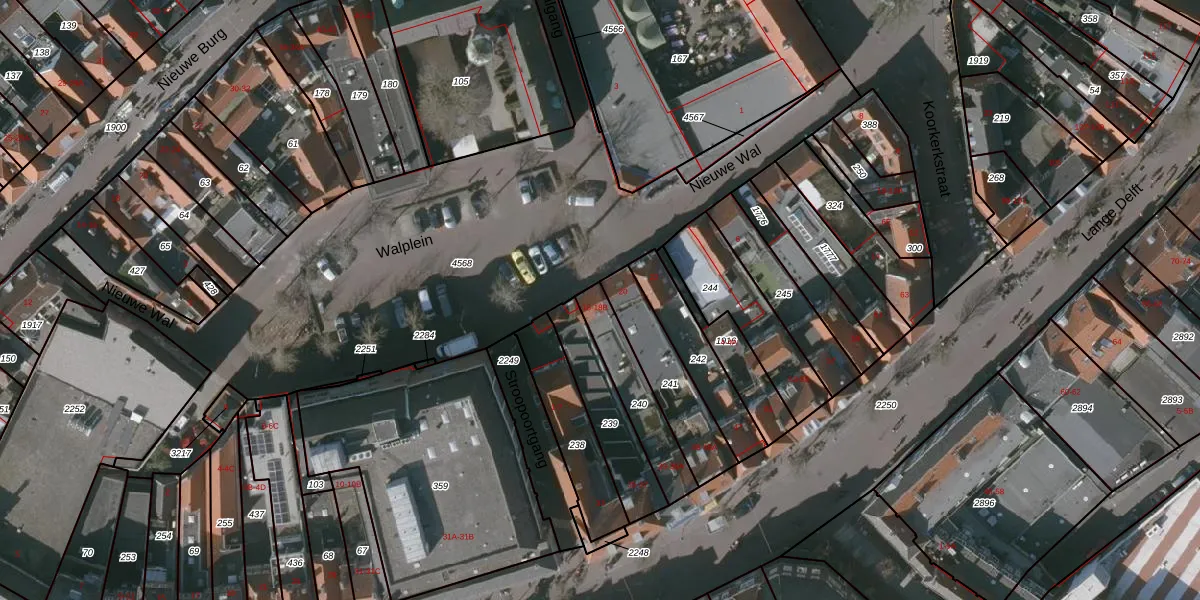 Het perceel waarop Walplein 18 staat heeft een oppervlakte van 205 m². Dit is een middelgroot perceel. De perceeloppervlakte wordt geregistreerd door het Kadaster. Gedetailleerde informatie over de maten van dit perceel kunt u vinden in het rapport Kadastrale kaart met maatvoering van Walplein 18.