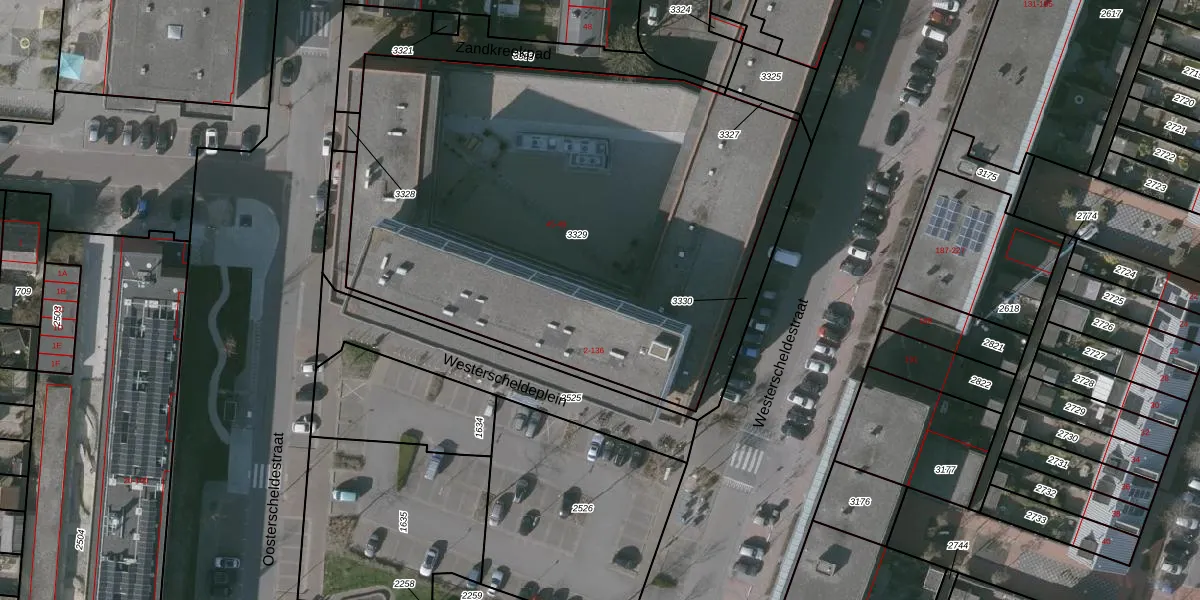 Het perceel waarop Westerscheldeplein 104 staat heeft een oppervlakte van 3155 m². Dit is een zeer groot perceel. De perceeloppervlakte wordt geregistreerd door het Kadaster. Gedetailleerde informatie over de maten van dit perceel kunt u vinden in het rapport Kadastrale kaart met maatvoering van Westerscheldeplein 104.
