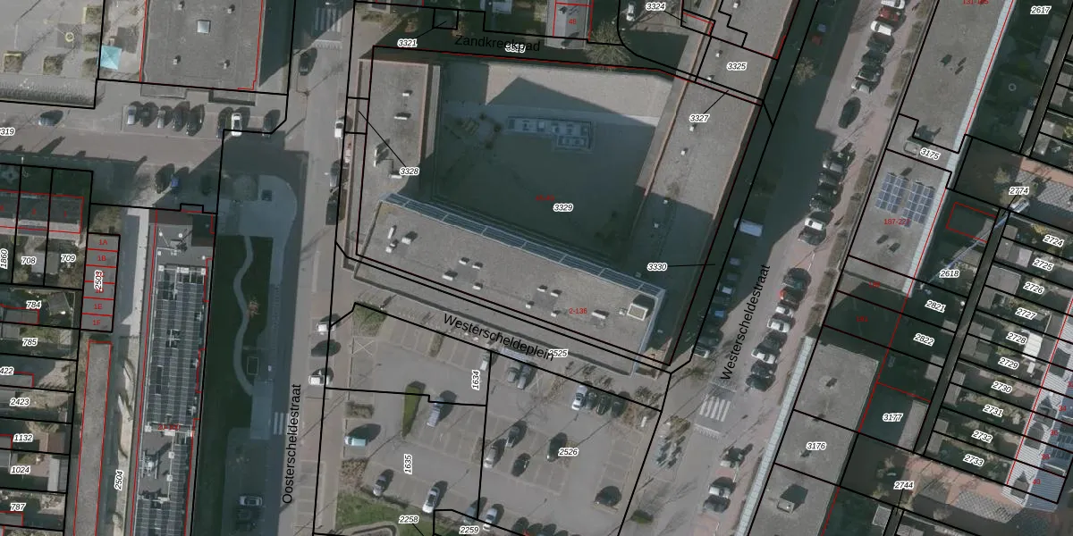 Het perceel waarop Westerscheldeplein 106 staat heeft een oppervlakte van 3155 m². Dit is een zeer groot perceel. De perceeloppervlakte wordt geregistreerd door het Kadaster. Gedetailleerde informatie over de maten van dit perceel kunt u vinden in het rapport Kadastrale kaart met maatvoering van Westerscheldeplein 106.