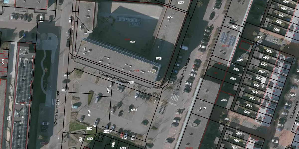 Het perceel waarop Westerscheldeplein 36 staat heeft een oppervlakte van 3155 m². Dit is een zeer groot perceel. De perceeloppervlakte wordt geregistreerd door het Kadaster. Gedetailleerde informatie over de maten van dit perceel kunt u vinden in het rapport Kadastrale kaart met maatvoering van Westerscheldeplein 36.
