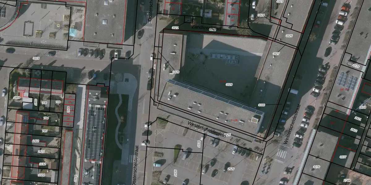 Het perceel waarop Westerscheldeplein 46 staat heeft een oppervlakte van 3155 m². Dit is een zeer groot perceel. De perceeloppervlakte wordt geregistreerd door het Kadaster. Gedetailleerde informatie over de maten van dit perceel kunt u vinden in het rapport Kadastrale kaart met maatvoering van Westerscheldeplein 46.
