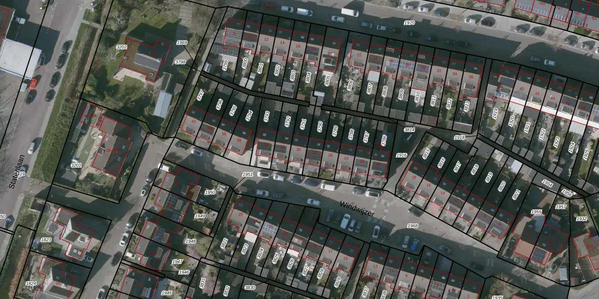 Het perceel waarop Windwijzer 30 staat heeft een oppervlakte van 126 m². Dit is een middelgroot perceel. De perceeloppervlakte wordt geregistreerd door het Kadaster. Gedetailleerde informatie over de maten van dit perceel kunt u vinden in het rapport Kadastrale kaart met maatvoering van Windwijzer 30.