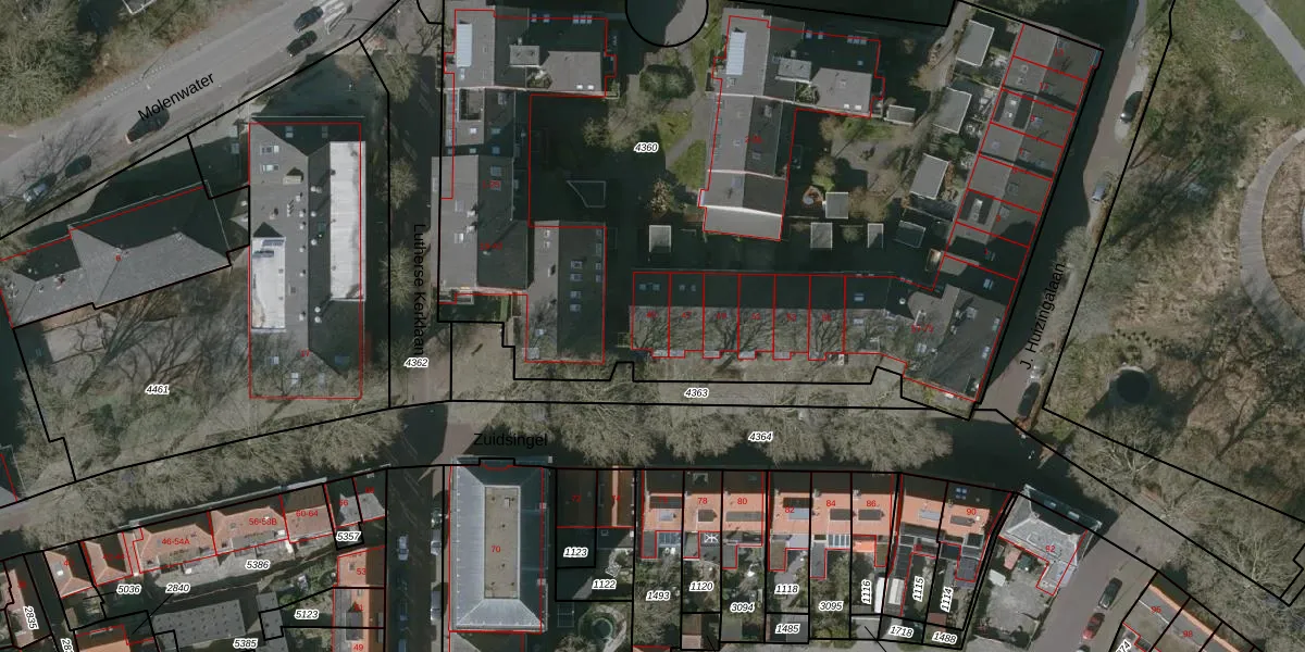 Het perceel waarop Zuidsingel 45 staat heeft een oppervlakte van 5230 m². Dit is een zeer groot perceel. De perceeloppervlakte wordt geregistreerd door het Kadaster. Gedetailleerde informatie over de maten van dit perceel kunt u vinden in het rapport Kadastrale kaart met maatvoering van Zuidsingel 45.