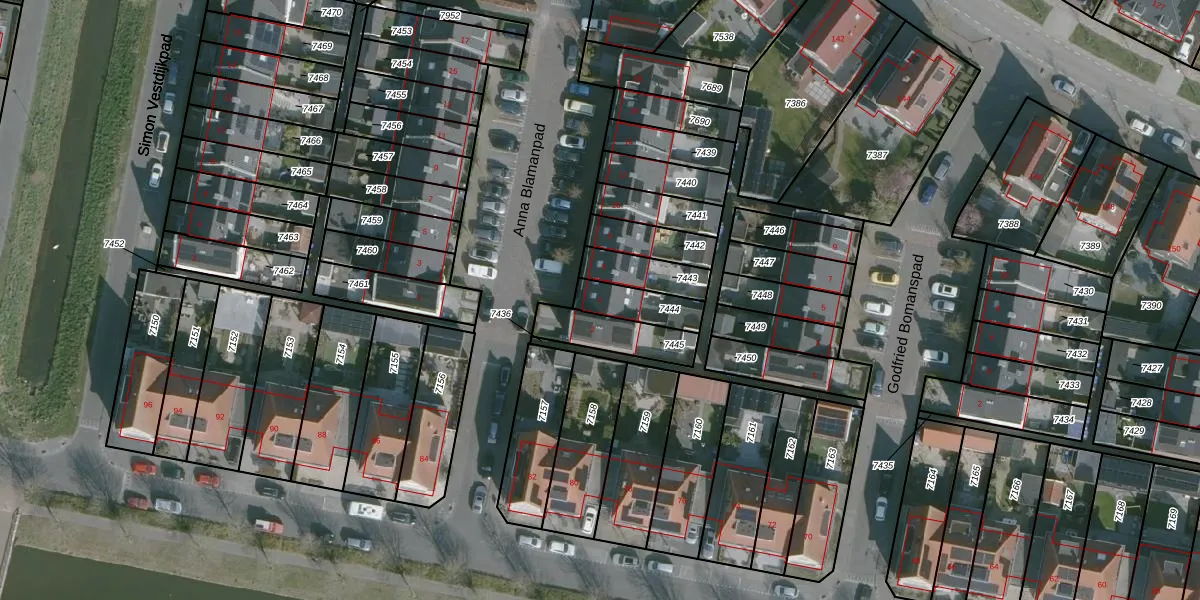 Gebruik de zoekbalk of klik op een perceel voor informatie over de adressen binnen dit perceel.