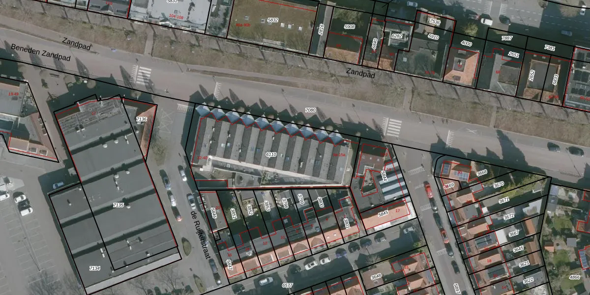 Het perceel waarop Beneden Zandpad 13 staat heeft een oppervlakte van 1318 m². Dit is een zeer groot perceel. De perceeloppervlakte wordt geregistreerd door het Kadaster. Gedetailleerde informatie over de maten van dit perceel kunt u vinden in het rapport Kadastrale kaart met maatvoering van Beneden Zandpad 13.