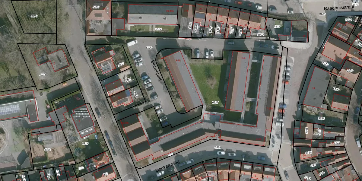 Het perceel waarop Binnenpad 15 staat heeft een oppervlakte van 3595 m². Dit is een zeer groot perceel. De perceeloppervlakte wordt geregistreerd door het Kadaster. Gedetailleerde informatie over de maten van dit perceel kunt u vinden in het rapport Kadastrale kaart met maatvoering van Binnenpad 15.
