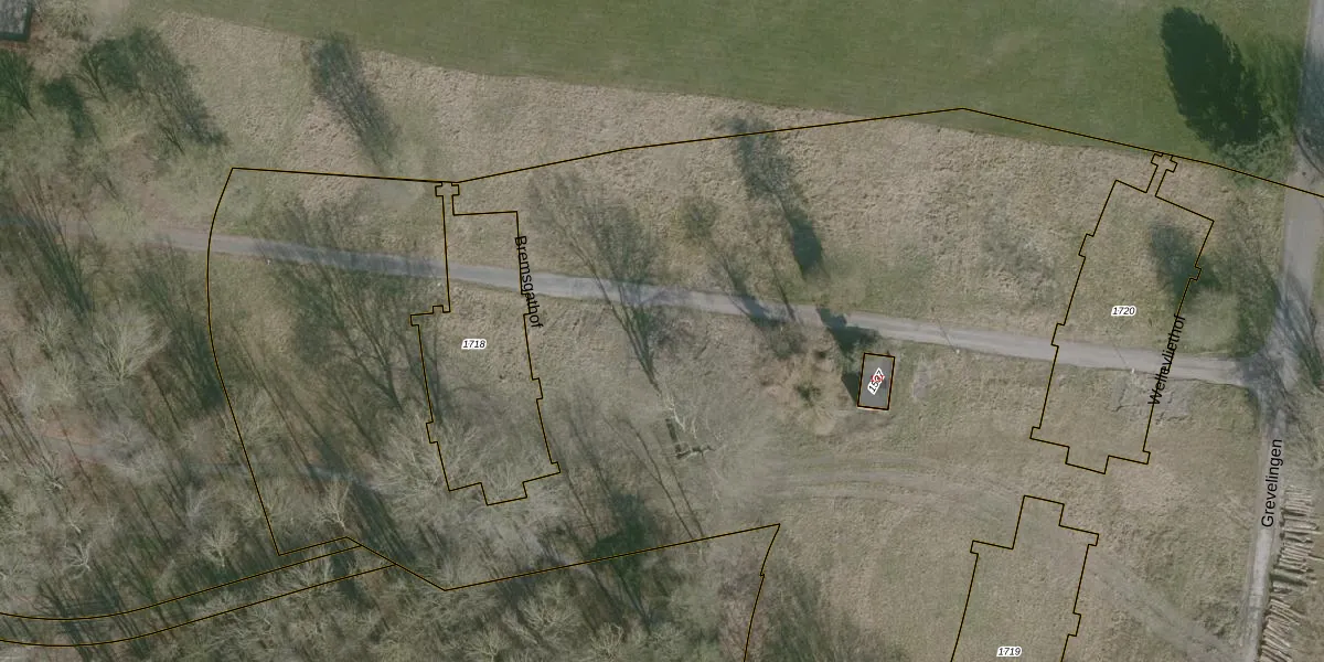 Het perceel waarop Bremsgathof 6 staat heeft een oppervlakte van 2,0 ha. Dit is een zeer groot perceel. De perceeloppervlakte wordt geregistreerd door het Kadaster. Gedetailleerde informatie over de maten van dit perceel kunt u vinden in het rapport Kadastrale kaart met maatvoering van Bremsgathof 6.