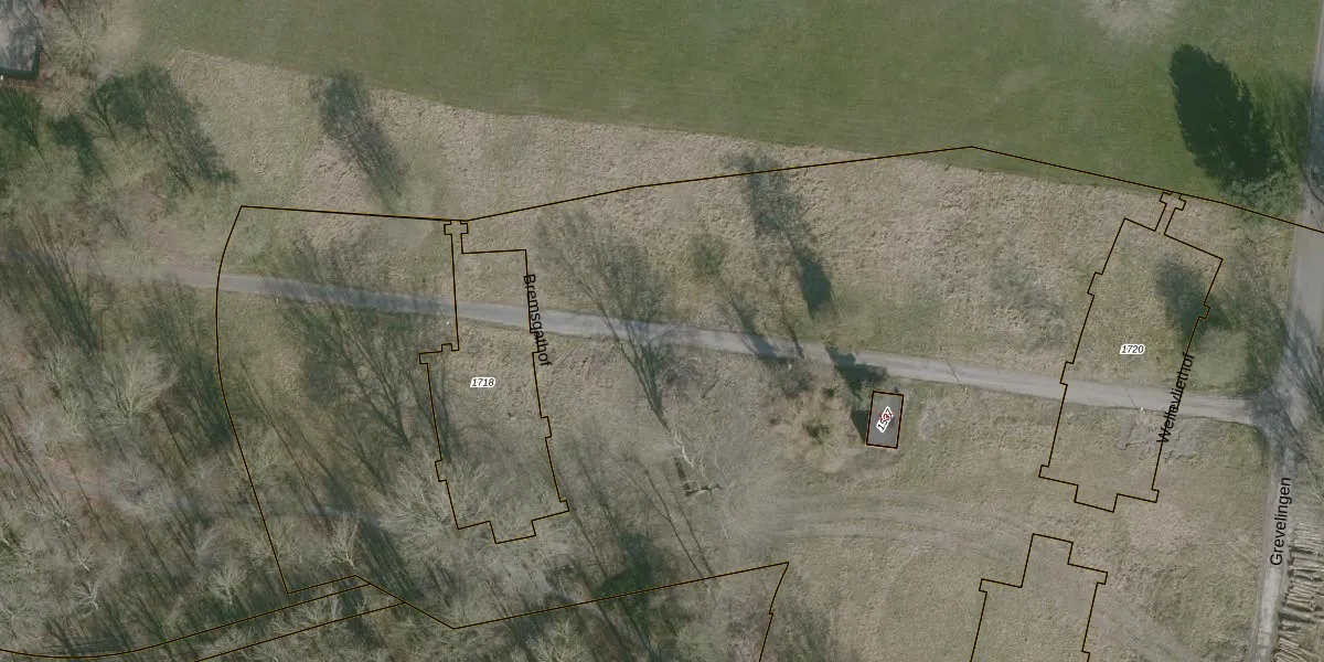 Het perceel waarop Bremsgathof 8 staat heeft een oppervlakte van 2,0 ha. Dit is een zeer groot perceel. De perceeloppervlakte wordt geregistreerd door het Kadaster. Gedetailleerde informatie over de maten van dit perceel kunt u vinden in het rapport Kadastrale kaart met maatvoering van Bremsgathof 8.