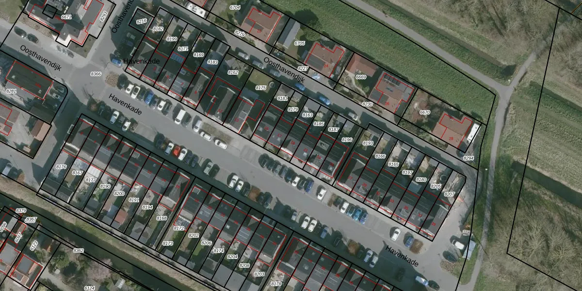 Het perceel waarop Havenkade 19 staat heeft een oppervlakte van 115 m². Dit is een middelgroot perceel. De perceeloppervlakte wordt geregistreerd door het Kadaster. Gedetailleerde informatie over de maten van dit perceel kunt u vinden in het rapport Kadastrale kaart met maatvoering van Havenkade 19.