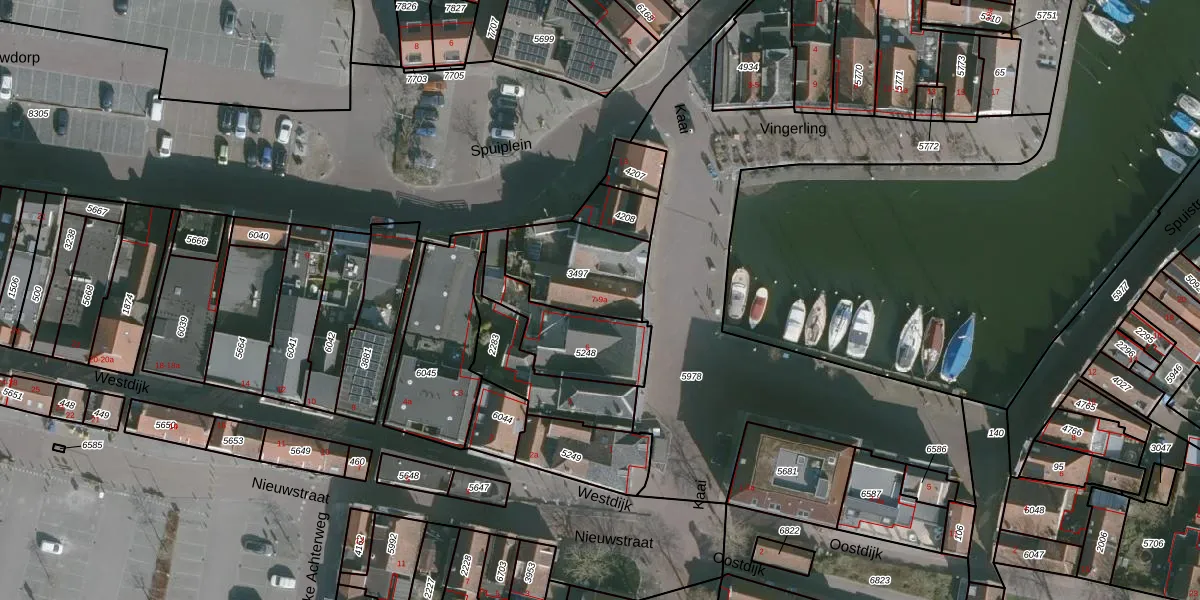 Het perceel waarop Kaai 7 staat heeft een oppervlakte van 305 m². Dit is een groot perceel. De perceeloppervlakte wordt geregistreerd door het Kadaster. Gedetailleerde informatie over de maten van dit perceel kunt u vinden in het rapport Kadastrale kaart met maatvoering van Kaai 7.