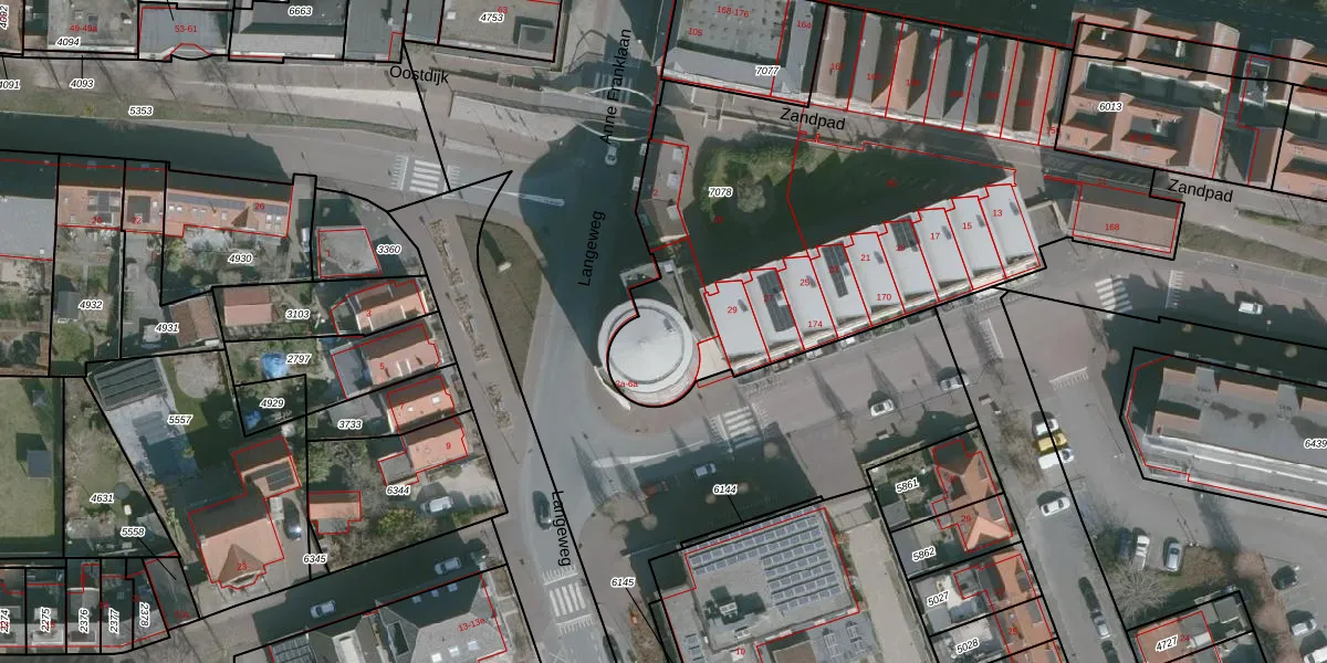 Het perceel waarop Langeweg 6-a staat heeft een oppervlakte van 2943 m². Dit is een zeer groot perceel. De perceeloppervlakte wordt geregistreerd door het Kadaster. Gedetailleerde informatie over de maten van dit perceel kunt u vinden in het rapport Kadastrale kaart met maatvoering van Langeweg 6-a.