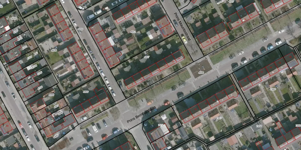 Prins Bernhardlaan 13 is gelegen op kadastraal perceel MDH00B4467. Deze kadastrale aanduiding is uniek en wordt gebruikt door het Kadaster om eigendomsrechten en andere zakelijke rechten vast te leggen. Het perceel maakt onderdeel uit van de kadastrale gemeente Middelharnis.