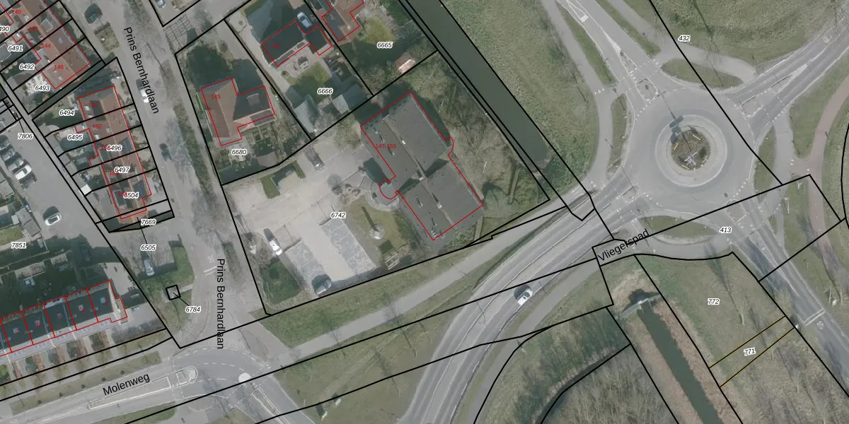 Prins Bernhardlaan 151 is gelegen op kadastraal perceel MDH00B6742. Deze kadastrale aanduiding is uniek en wordt gebruikt door het Kadaster om eigendomsrechten en andere zakelijke rechten vast te leggen. Het perceel maakt onderdeel uit van de kadastrale gemeente Middelharnis.