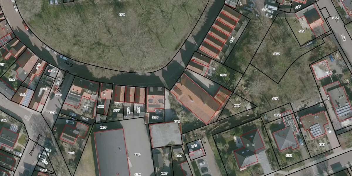Het perceel waarop Ring 54 staat heeft een oppervlakte van 1157 m². Dit is een zeer groot perceel. De perceeloppervlakte wordt geregistreerd door het Kadaster. Gedetailleerde informatie over de maten van dit perceel kunt u vinden in het rapport Kadastrale kaart met maatvoering van Ring 54.