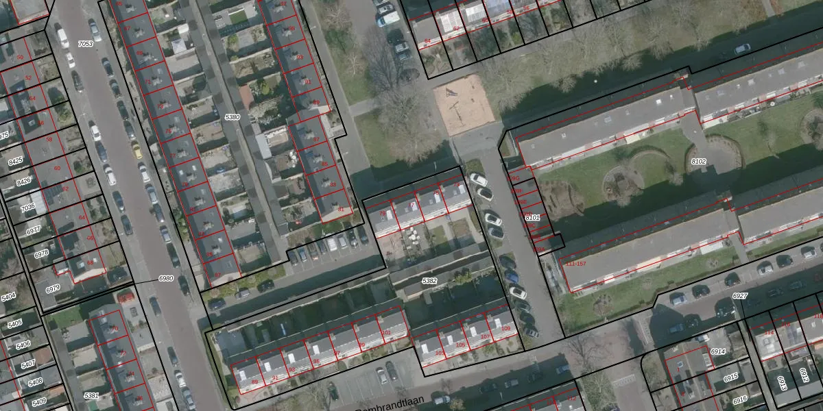 Het perceel waarop Rubensplein 77 staat heeft een oppervlakte van 2112 m². Dit is een zeer groot perceel. De perceeloppervlakte wordt geregistreerd door het Kadaster. Gedetailleerde informatie over de maten van dit perceel kunt u vinden in het rapport Kadastrale kaart met maatvoering van Rubensplein 77.