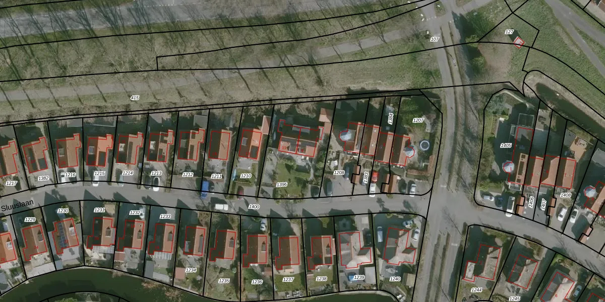 Het perceel waarop Sluuslaan 9 staat heeft een oppervlakte van 648 m². Dit is een groot perceel. De perceeloppervlakte wordt geregistreerd door het Kadaster. Gedetailleerde informatie over de maten van dit perceel kunt u vinden in het rapport Kadastrale kaart met maatvoering van Sluuslaan 9.