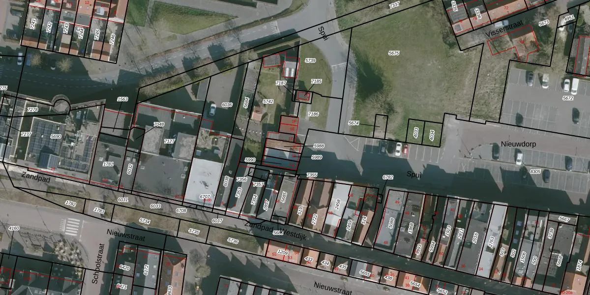 Het perceel waarop het adres ligt is MDH00-B-5988. De afkorting 'MDH00' staat voor kadastrale gemeente Middelharnis. De gemiddelde perceelgrootte in Middelharnis is 8672,94 m². Dit perceel is kleiner: de perceeloppervlakte bedraagt 40 m². De grootste perceeloppervlakte in de kadastrale gemeente is 6,51 km². De kleinste oppervlakte bedraagt 0 m². Er zijn geen andere adressen aanwezig op het perceel. In de Basisregistratie Kadaster (BRK) werden de grenzen van het perceel geregistreerd op 20-02-2006.