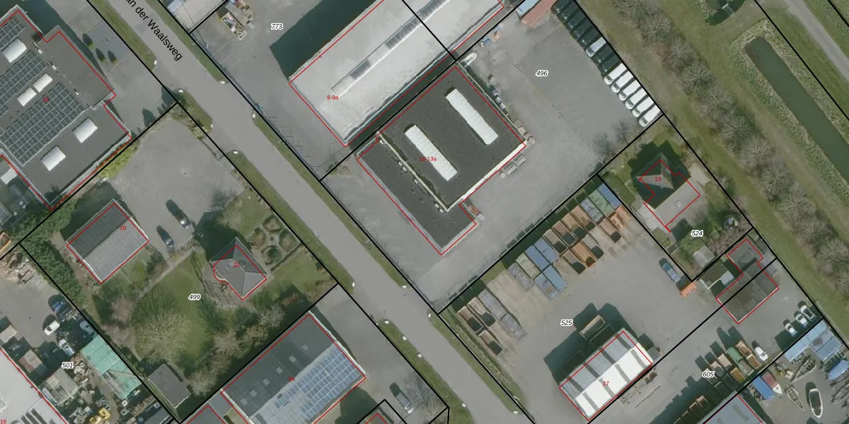 Het perceel waarop Van der Waalsweg 13-a staat heeft een oppervlakte van 3040 m². Dit is een zeer groot perceel. De perceeloppervlakte wordt geregistreerd door het Kadaster. Gedetailleerde informatie over de maten van dit perceel kunt u vinden in het rapport Kadastrale kaart met maatvoering van Van der Waalsweg 13-a.