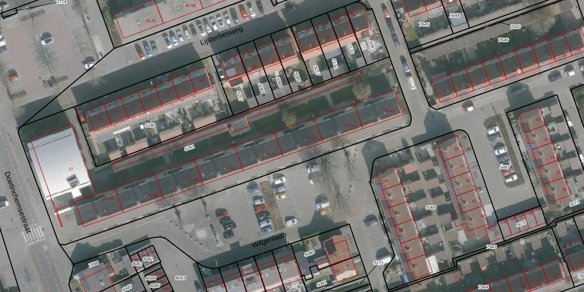 Het perceel waarop Wilgenlaan 60 staat heeft een oppervlakte van 3382 m². Dit is een zeer groot perceel. De perceeloppervlakte wordt geregistreerd door het Kadaster. Gedetailleerde informatie over de maten van dit perceel kunt u vinden in het rapport Kadastrale kaart met maatvoering van Wilgenlaan 60.