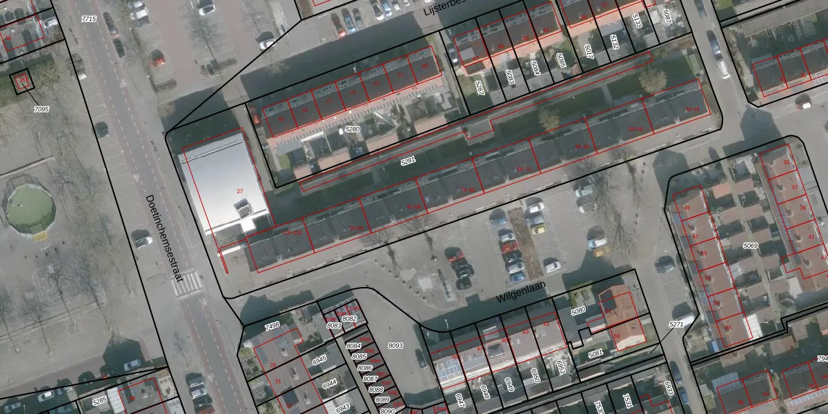 Wilgenlaan 82 is gelegen op kadastraal perceel MDH00B5281. Deze kadastrale aanduiding is uniek en wordt gebruikt door het Kadaster om eigendomsrechten en andere zakelijke rechten vast te leggen. Het perceel maakt onderdeel uit van de kadastrale gemeente Middelharnis.