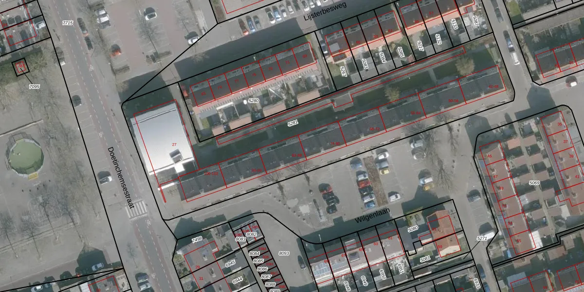 Het perceel waarop Wilgenlaan 86 staat heeft een oppervlakte van 3382 m². Dit is een zeer groot perceel. De perceeloppervlakte wordt geregistreerd door het Kadaster. Gedetailleerde informatie over de maten van dit perceel kunt u vinden in het rapport Kadastrale kaart met maatvoering van Wilgenlaan 86.