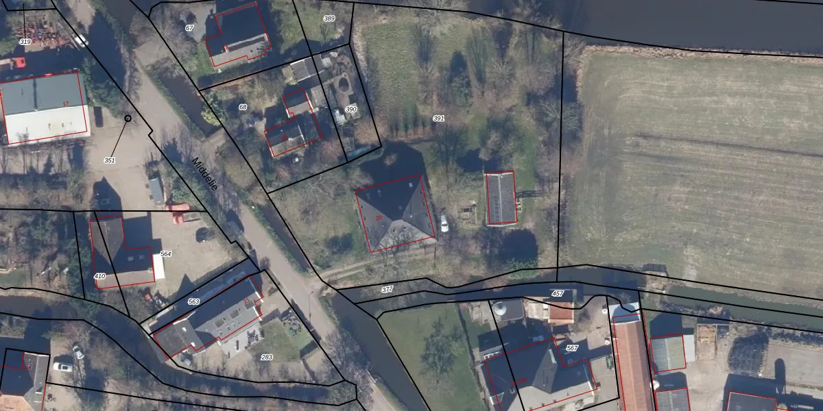 Middelie 20 is gelegen op kadastraal perceel MDL02C391. Deze kadastrale aanduiding is uniek en wordt gebruikt door het Kadaster om eigendomsrechten en andere zakelijke rechten vast te leggen. Het perceel maakt onderdeel uit van de kadastrale gemeente Middelie.