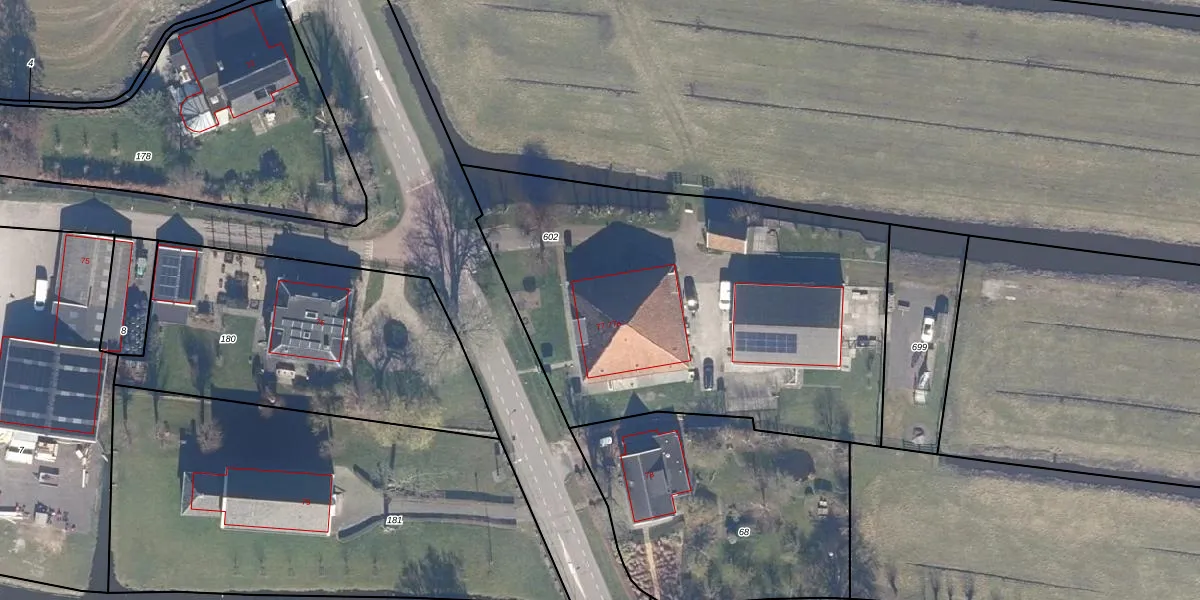 Het adres is gelegen op perceel 602 in de sectie D en de kadastrale gemeente Middelie. De kadastrale aanduiding is aldus MDL02-D-602. De gemiddelde perceelgrootte in Middelie is 1,1 ha. Dit perceel is kleiner: de perceeloppervlakte bedraagt 2380 m². Het grootste perceel in de kadastrale gemeente is 16,7 ha. Het kleinste perceel heeft een oppervlakte van 2 m². Er zijn 2 adressen aanwezig op het perceel. De laatste wijziging in het de Basisregistratie Kadaster (BRK) was op 12-01-2007.