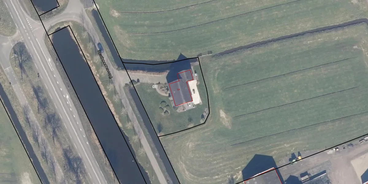 Riethoorneweg 1-a is gelegen op kadastraal perceel MDL02D613. Deze kadastrale aanduiding is uniek en wordt gebruikt door het Kadaster om eigendomsrechten en andere zakelijke rechten vast te leggen. Het perceel maakt onderdeel uit van de kadastrale gemeente Middelie.