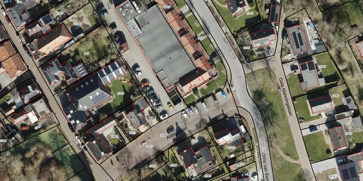 Het perceel waarop Asingalaan 8 staat heeft een oppervlakte van 1291 m². Dit is een zeer groot perceel. De perceeloppervlakte wordt geregistreerd door het Kadaster. Gedetailleerde informatie over de maten van dit perceel kunt u vinden in het rapport Kadastrale kaart met maatvoering van Asingalaan 8.