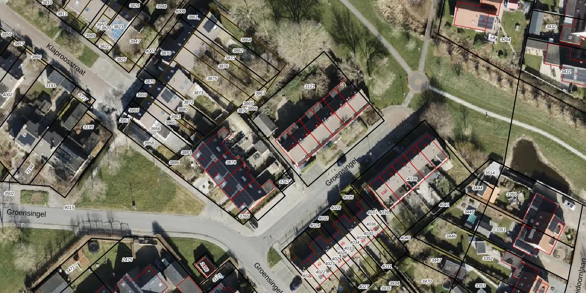 Het perceel waarop Groensingel 28-A staat heeft een oppervlakte van 1064 m². Dit is een zeer groot perceel. De perceeloppervlakte wordt geregistreerd door het Kadaster. Gedetailleerde informatie over de maten van dit perceel kunt u vinden in het rapport Kadastrale kaart met maatvoering van Groensingel 28-A.