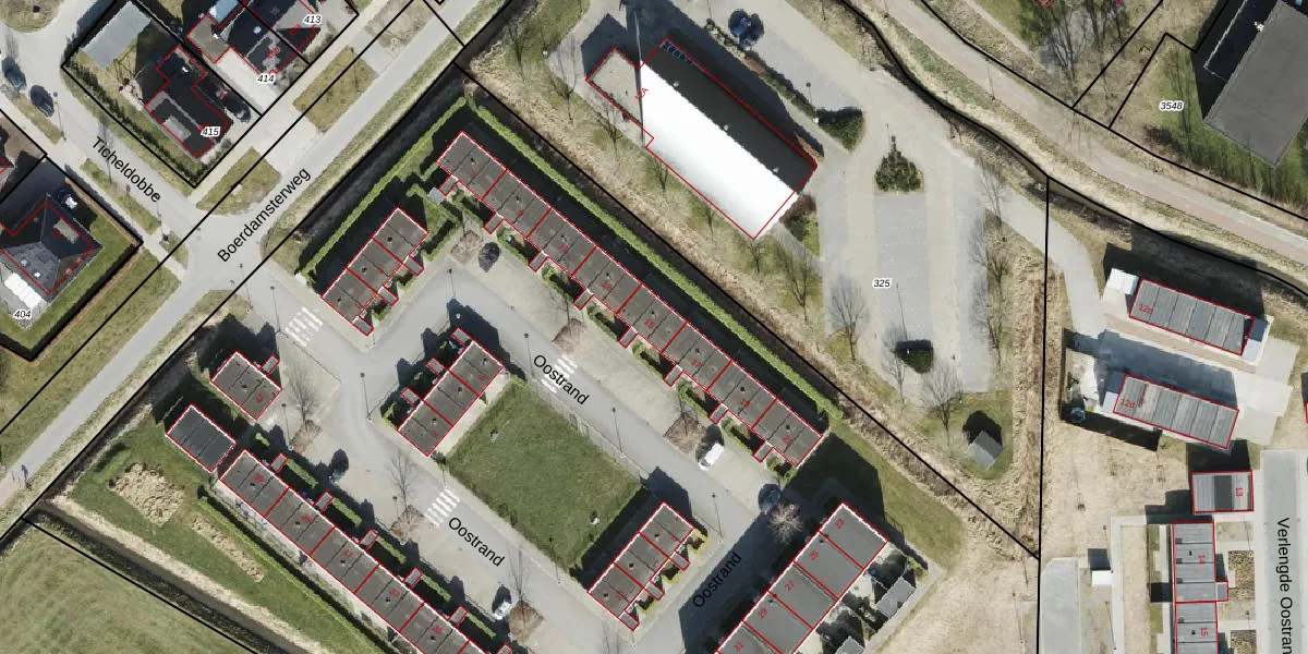 Het perceel waarop Oostrand 15 staat heeft een oppervlakte van 1,2 ha. Dit is een zeer groot perceel. De perceeloppervlakte wordt geregistreerd door het Kadaster. Gedetailleerde informatie over de maten van dit perceel kunt u vinden in het rapport Kadastrale kaart met maatvoering van Oostrand 15.