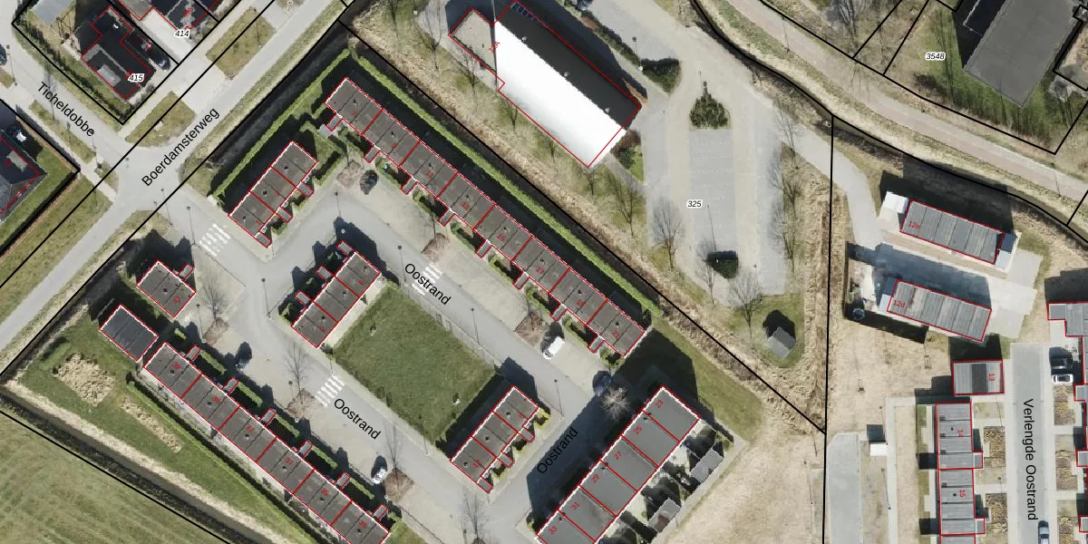 Het perceel waarop Oostrand 17 staat heeft een oppervlakte van 1,2 ha. Dit is een zeer groot perceel. De perceeloppervlakte wordt geregistreerd door het Kadaster. Gedetailleerde informatie over de maten van dit perceel kunt u vinden in het rapport Kadastrale kaart met maatvoering van Oostrand 17.