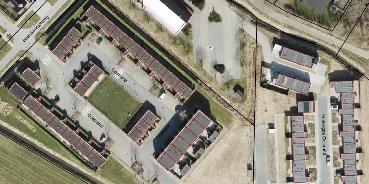 Het perceel waarop Oostrand 21 staat heeft een oppervlakte van 1,2 ha. Dit is een zeer groot perceel. De perceeloppervlakte wordt geregistreerd door het Kadaster. Gedetailleerde informatie over de maten van dit perceel kunt u vinden in het rapport Kadastrale kaart met maatvoering van Oostrand 21.