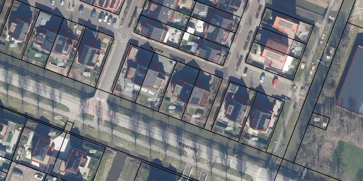 Het perceel waarop Aurora 16 staat heeft een oppervlakte van 405 m². Dit is een groot perceel. De perceeloppervlakte wordt geregistreerd door het Kadaster. Gedetailleerde informatie over de maten van dit perceel kunt u vinden in het rapport Kadastrale kaart met maatvoering van Aurora 16.