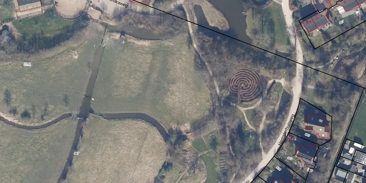 Het perceel waarop Bamestraweg 2-P staat heeft een oppervlakte van 3,6 ha. Dit is een zeer groot perceel. De perceeloppervlakte wordt geregistreerd door het Kadaster. Gedetailleerde informatie over de maten van dit perceel kunt u vinden in het rapport Kadastrale kaart met maatvoering van Bamestraweg 2-P.