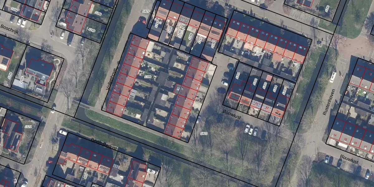 Het perceel waarop Bouwlust 4 staat heeft een oppervlakte van 2210 m². Dit is een zeer groot perceel. De perceeloppervlakte wordt geregistreerd door het Kadaster. Gedetailleerde informatie over de maten van dit perceel kunt u vinden in het rapport Kadastrale kaart met maatvoering van Bouwlust 4.