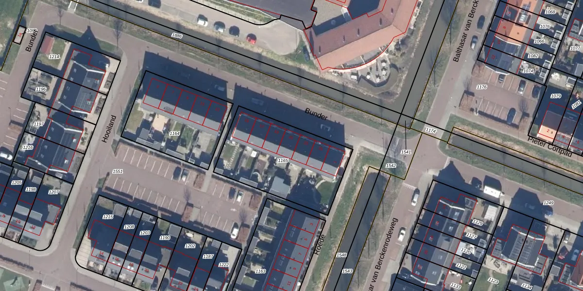 Het perceel waarop Bunder 21 staat heeft een oppervlakte van 1020 m². Dit is een zeer groot perceel. De perceeloppervlakte wordt geregistreerd door het Kadaster. Gedetailleerde informatie over de maten van dit perceel kunt u vinden in het rapport Kadastrale kaart met maatvoering van Bunder 21.