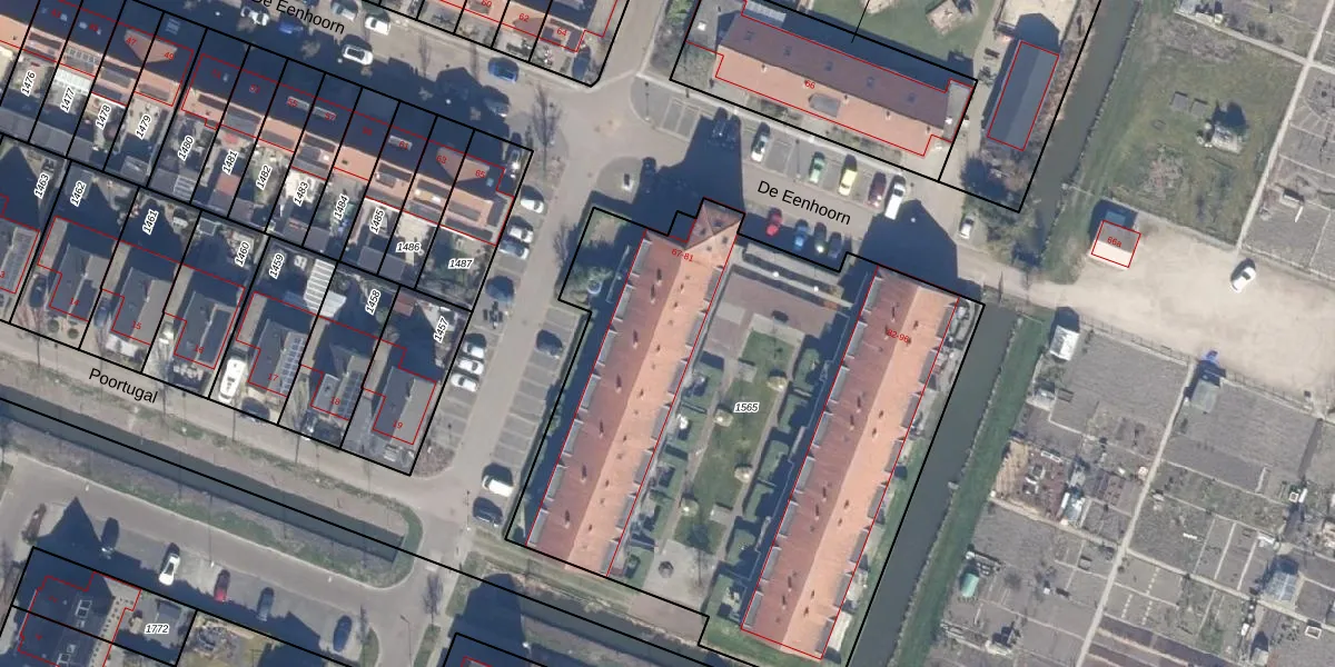 Het perceel waarop De Eenhoorn 73 staat heeft een oppervlakte van 3257 m². Dit is een zeer groot perceel. De perceeloppervlakte wordt geregistreerd door het Kadaster. Gedetailleerde informatie over de maten van dit perceel kunt u vinden in het rapport Kadastrale kaart met maatvoering van De Eenhoorn 73.