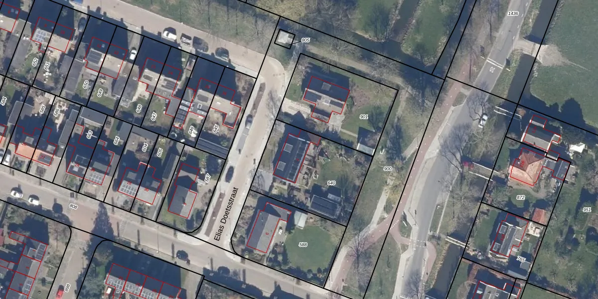Gebruik de zoekbalk of klik op een perceel voor informatie over de adressen binnen dit perceel.