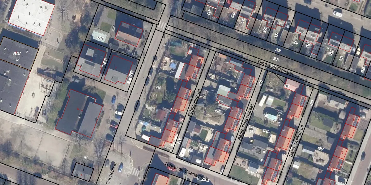 Het perceel waarop Fabritiusstraat 3 staat heeft een oppervlakte van 1587 m². Dit is een zeer groot perceel. De perceeloppervlakte wordt geregistreerd door het Kadaster. Gedetailleerde informatie over de maten van dit perceel kunt u vinden in het rapport Kadastrale kaart met maatvoering van Fabritiusstraat 3.