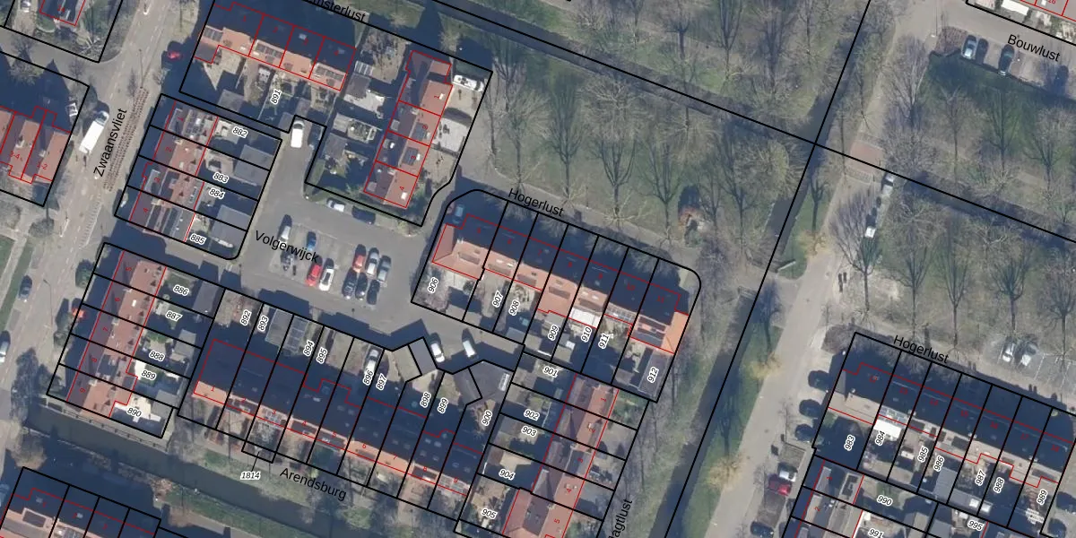 Gebruik de zoekbalk of klik op een perceel voor informatie over de adressen binnen dit perceel.