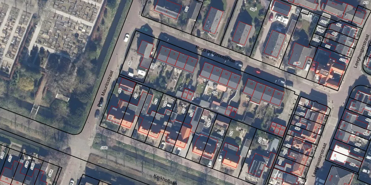 Het perceel waarop Hugo de Grootstraat 9-A staat heeft een oppervlakte van 2106 m². Dit is een zeer groot perceel. De perceeloppervlakte wordt geregistreerd door het Kadaster. Gedetailleerde informatie over de maten van dit perceel kunt u vinden in het rapport Kadastrale kaart met maatvoering van Hugo de Grootstraat 9-A.